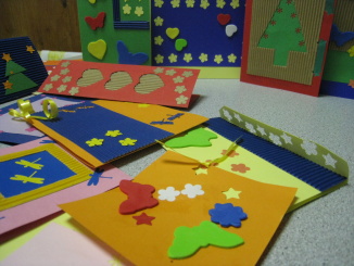 Možná budete mít to štěstí a budete obdarováni jedním z těchto přáníček. Můžete si být jisti, že máte skutečný originál. Tyto vytáběli človíčci a jejich maminky na čtvrteční odpolední výtvarce v Pozořickém Mateřském centru.